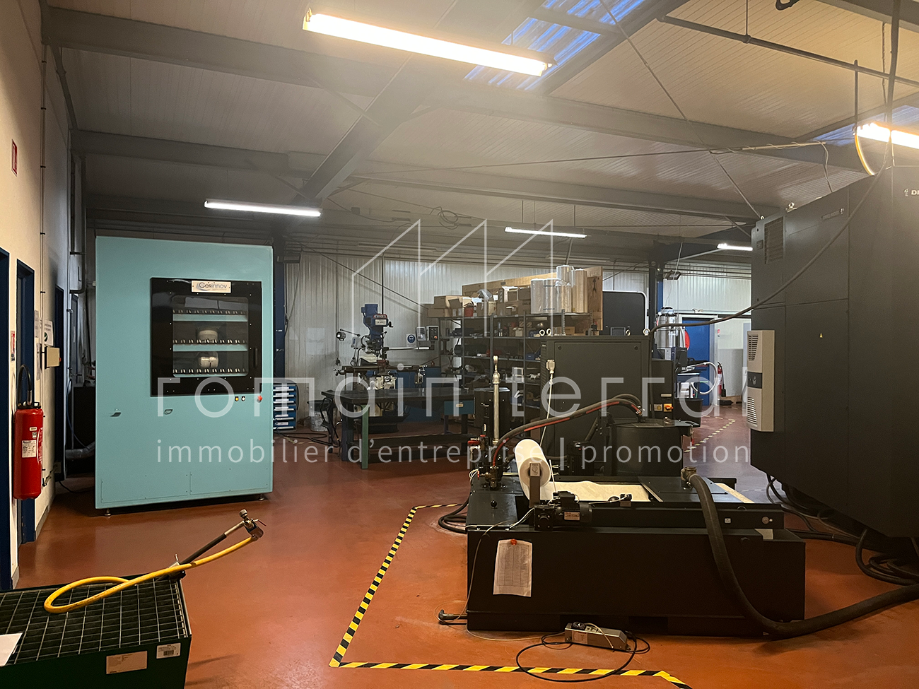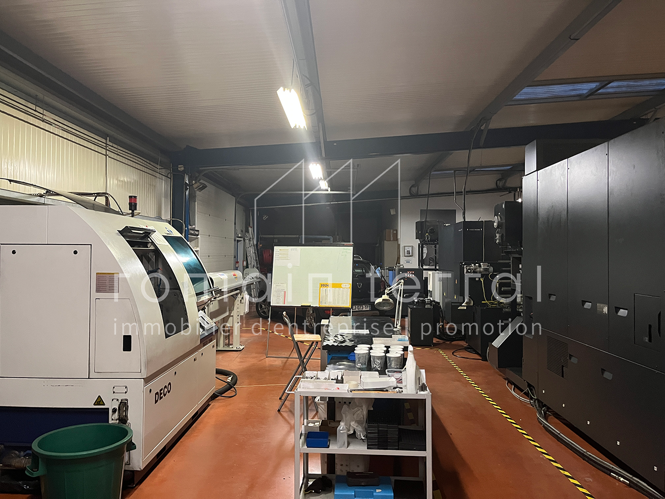L’atelier, d’une superficie d’environ 1274m2, est accessible depuis l’espace administratif, mais également par une porte sectionnelle donnant accès à la zone de livraison située à l’arrière du bâtiment.
