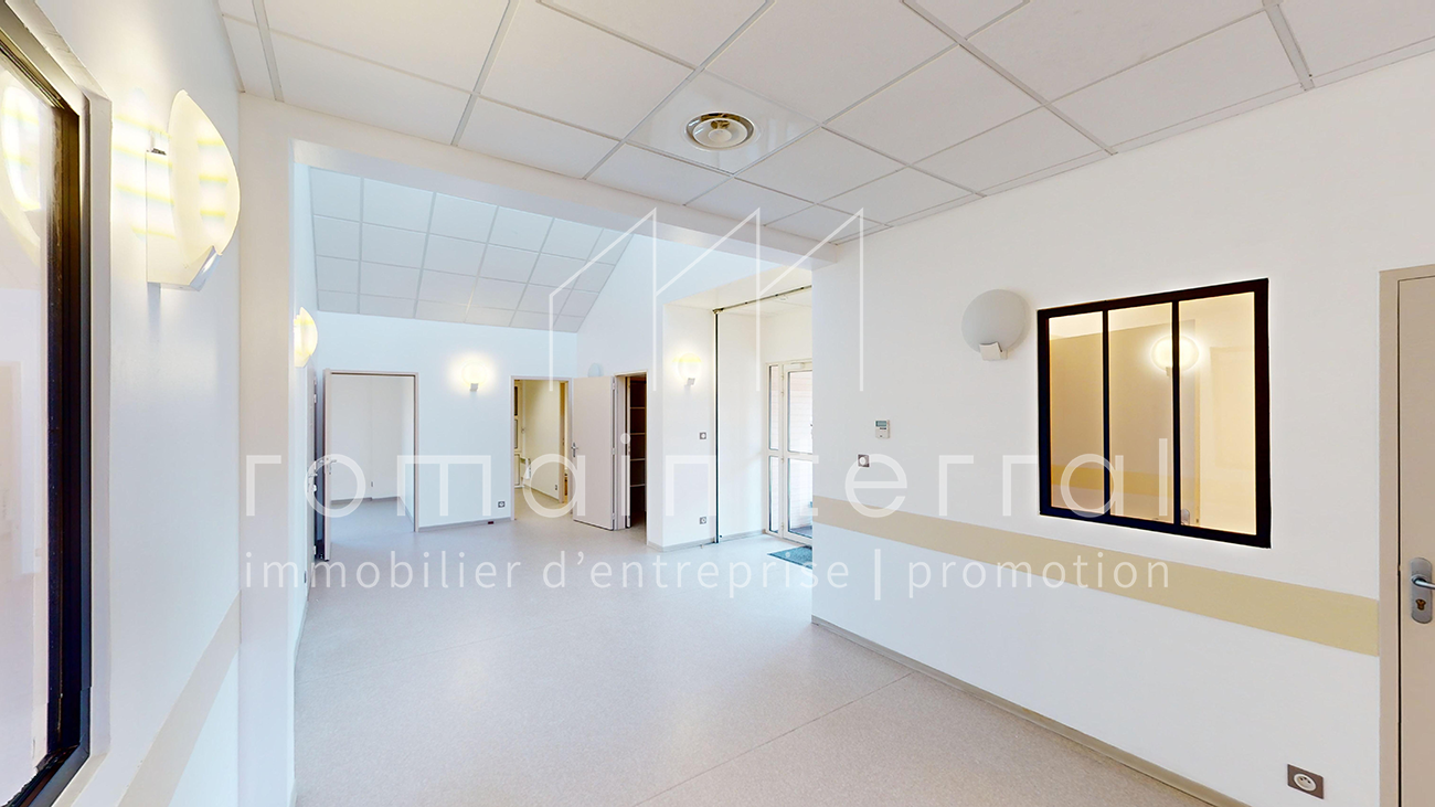 Il s’agit d’un bâtiment parfaitement adapté à une activité médicale, comprenant une salle d’attente dès l’entrée, un bureau d’accueil, diverses salles de soin équipées de points d’eau, et de sanitaires.
