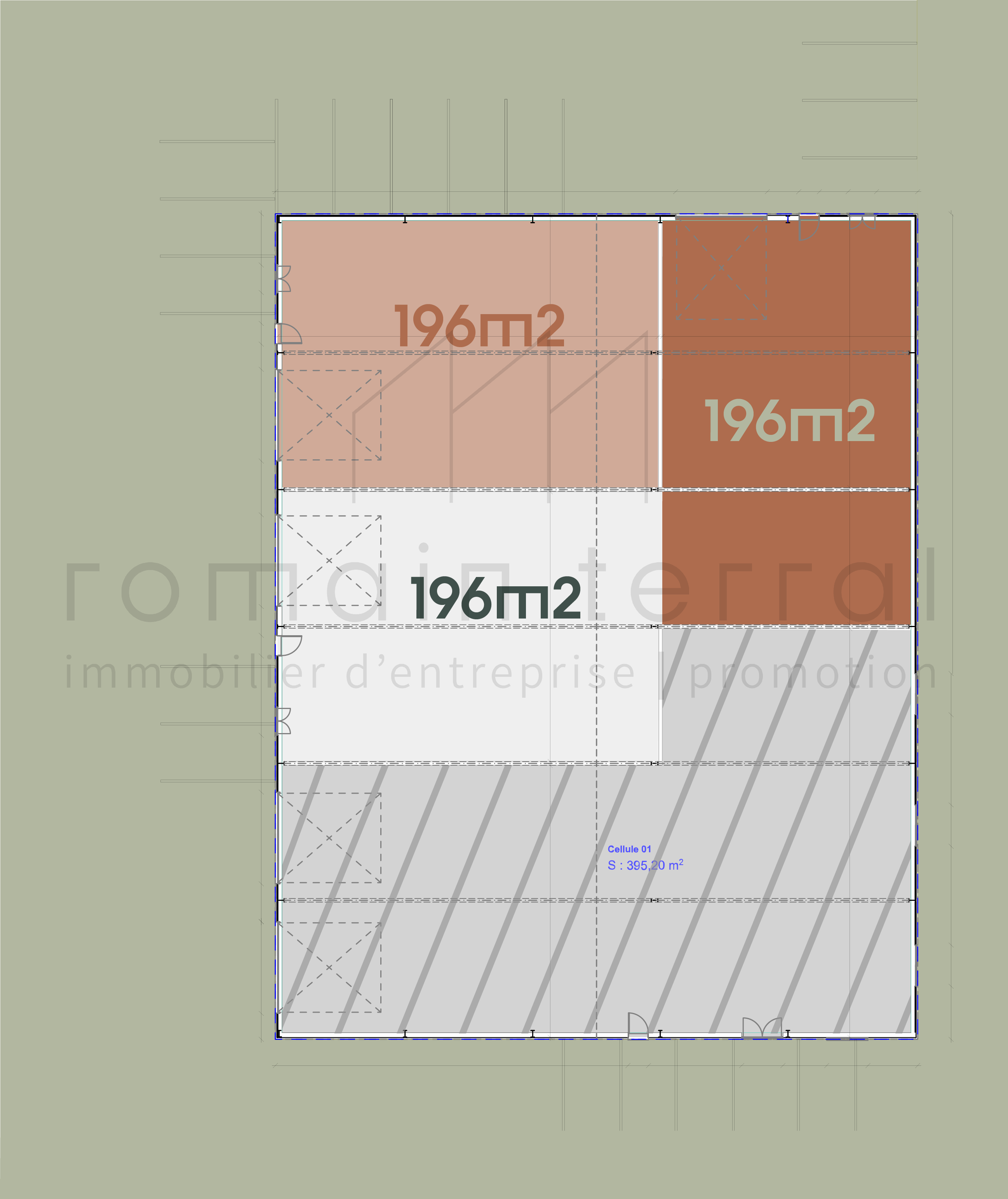 Il s’agit d’une cellule de 196m² au sein d’un bâtiment d’activités de 975m², disposant d’une isolation thermique performante et d’une hauteur sous plafond permettant un aménagement en mezzanine.