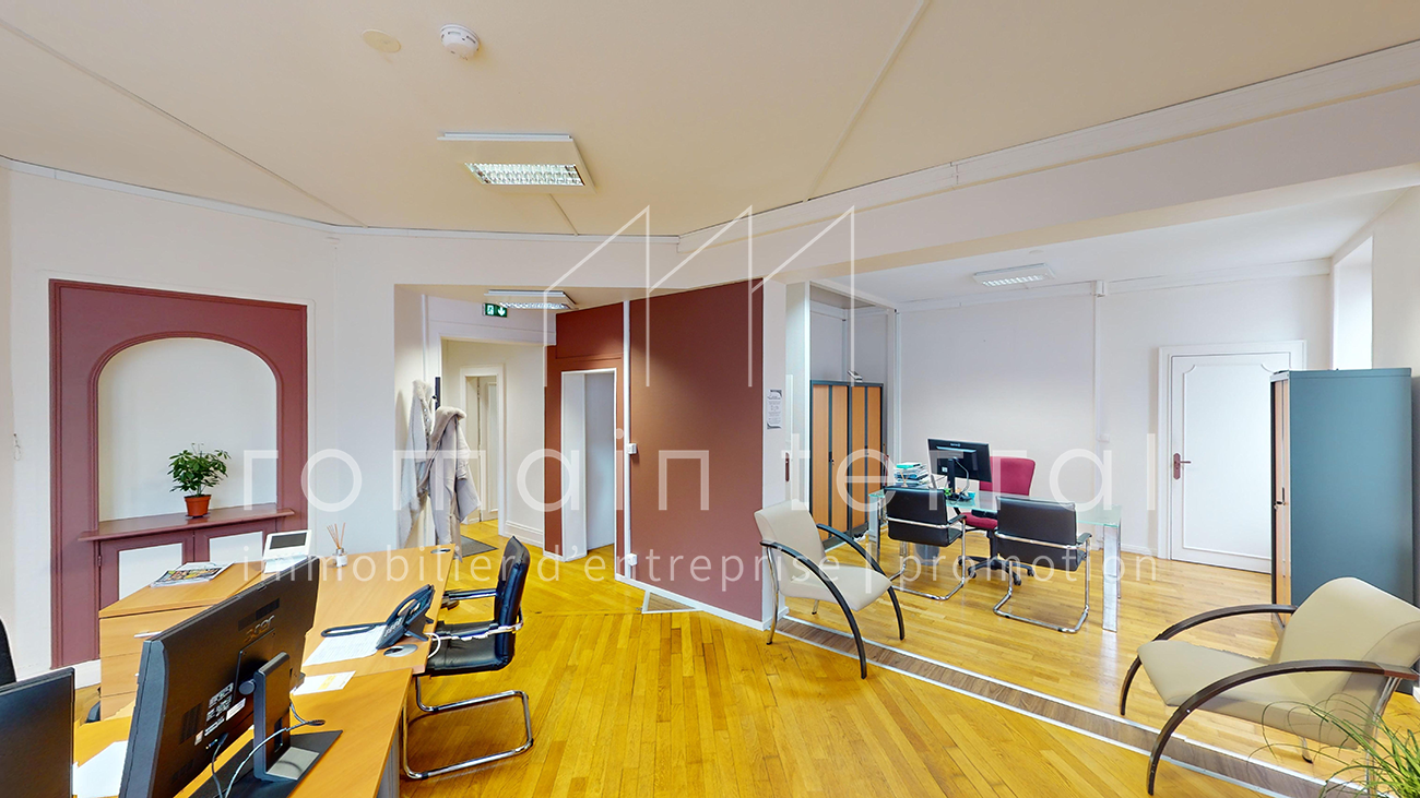 Il s’agit d’un local en très bon état qui ne nécessite aucuns travaux de rénovation et qui se compose d’une entrée, d’une pièce principale pouvant accueillir plusieurs collaborateurs, de deux bureaux, d’une cuisine et WC.